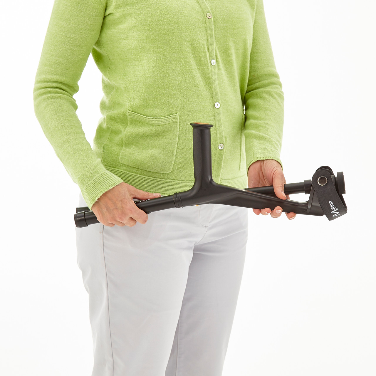 The Foldacrutch is designed to be more comfortable than regular crutches with extended use. The Velcro cuff strap is softer on your upper arm compared to a plastic cuff, while the grip handle is kind to your hands and wrists.